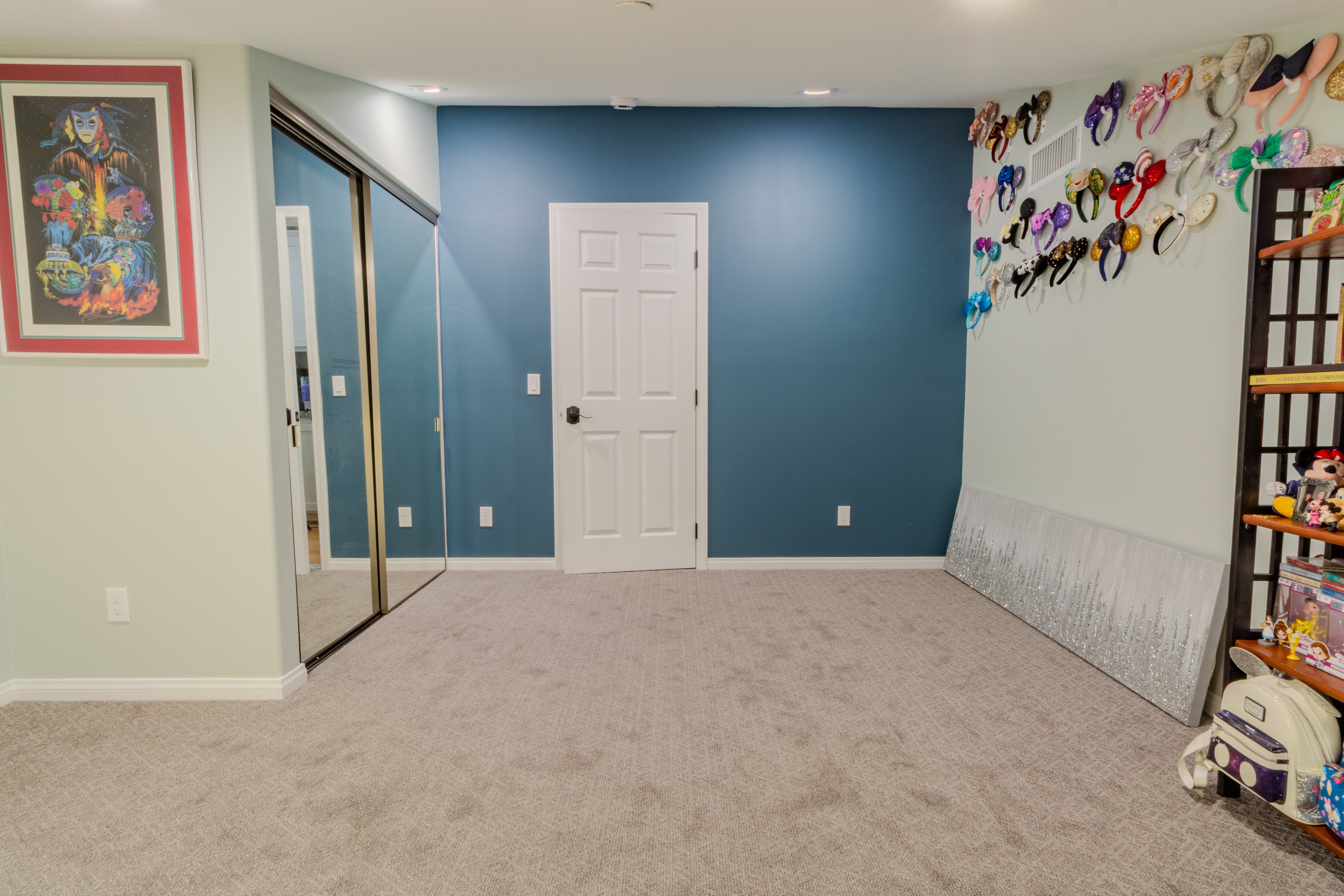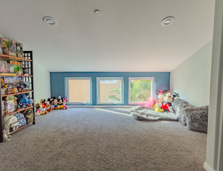 This new bedroom is a great addition to this home and serves as a perfect place to display Disney memorabilia.Services: High-Ceiling Addition.Features: Exterior Windows & Doors (Replacement Windows) & Interior Doors.