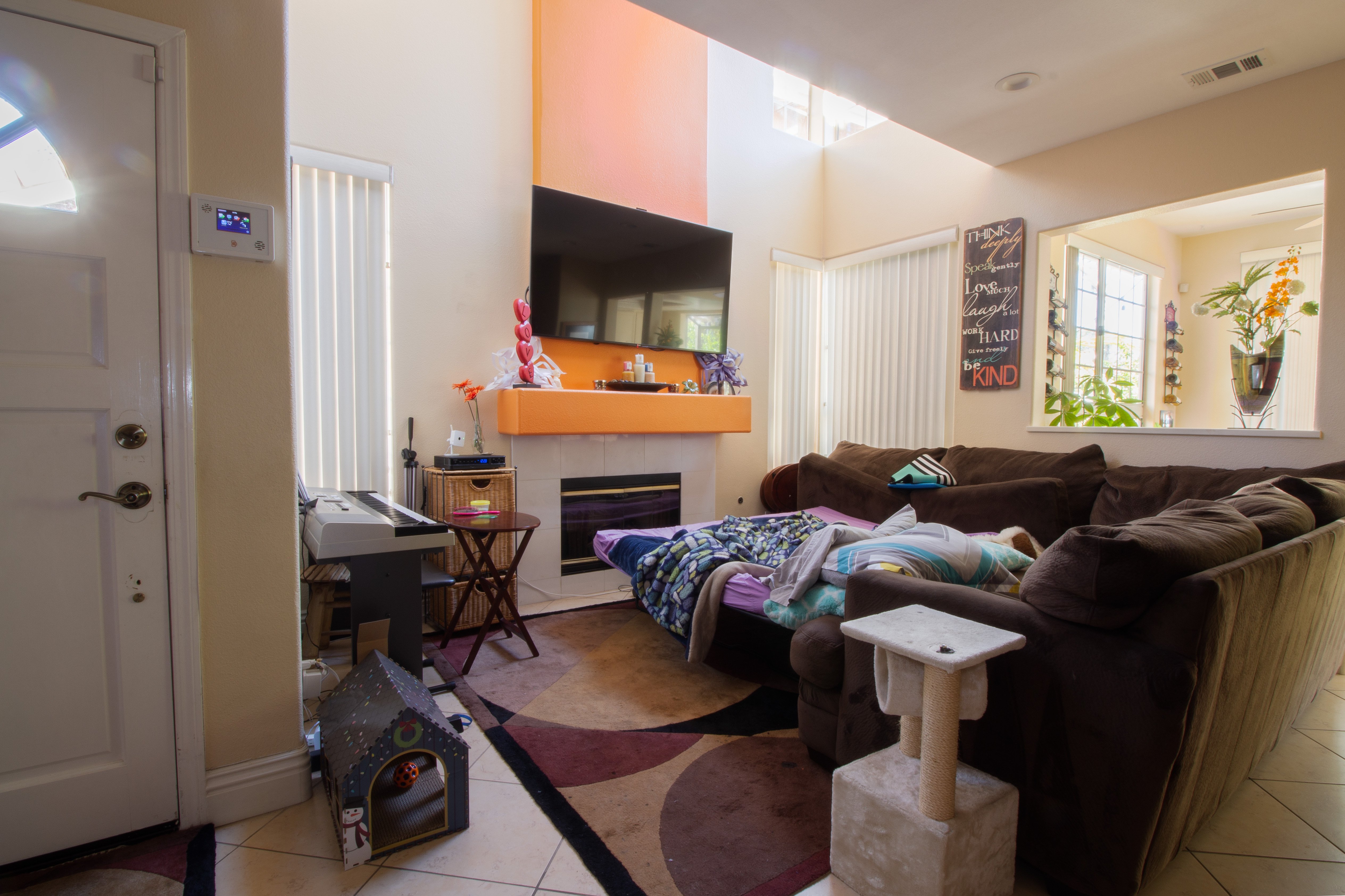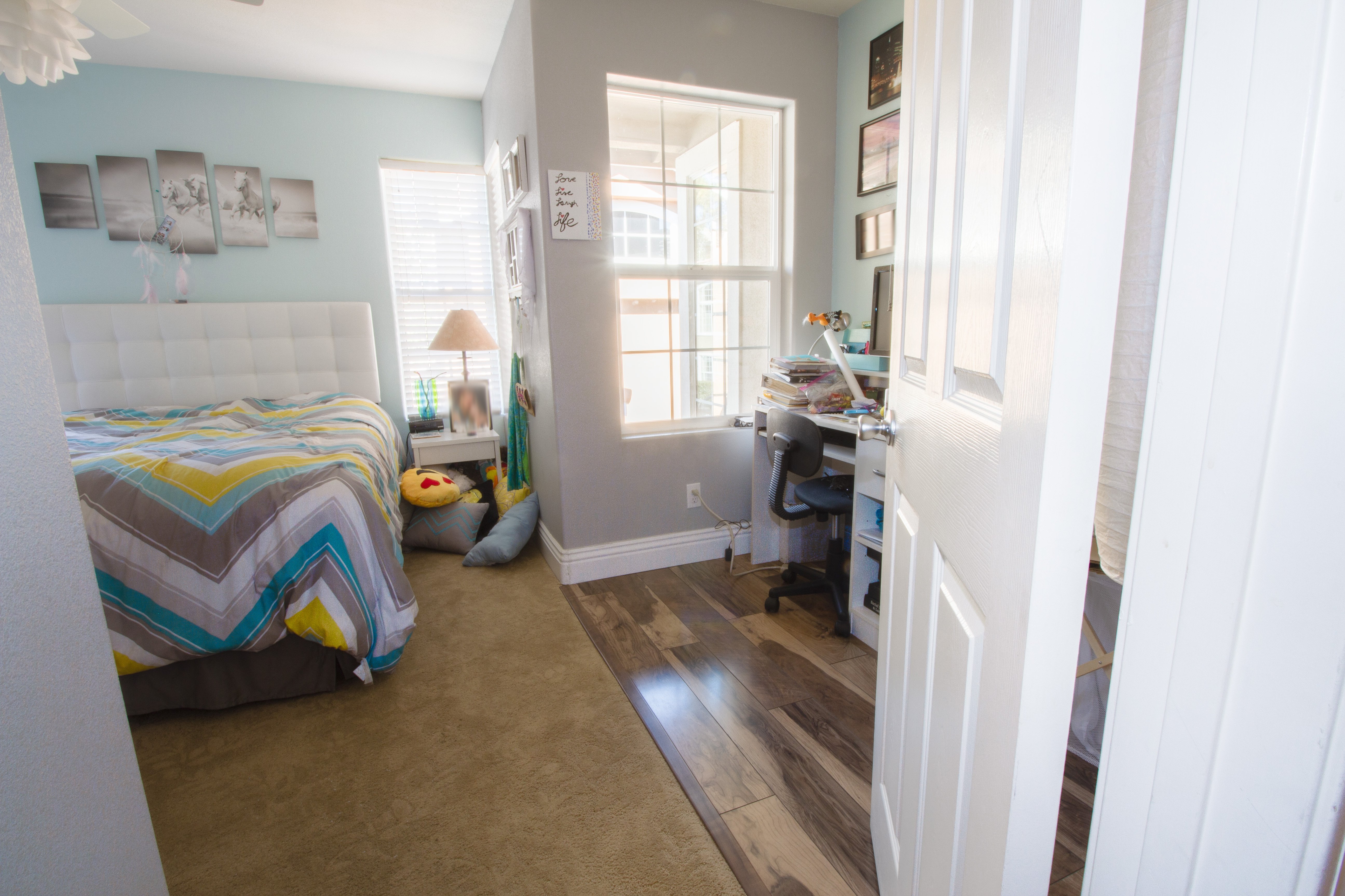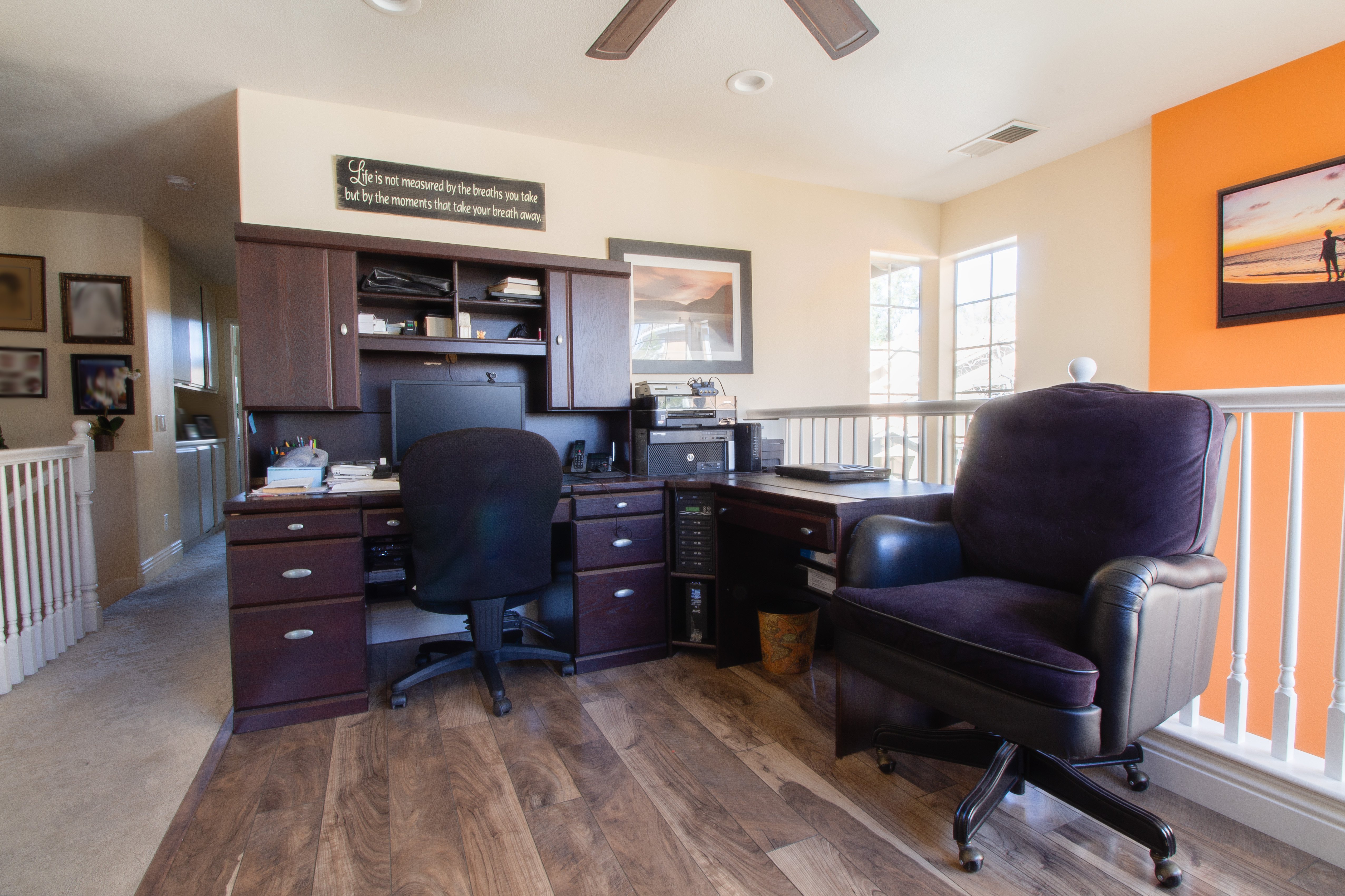 Airy office addition overlooks the living room below. Adjacent bedroom expansion allows for the perfect study nook.Services: High-Ceiling Additions.Features: Custom Railing.